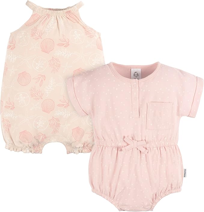 Baby Girls' Sleeveless and Short Sleeve Romper Set