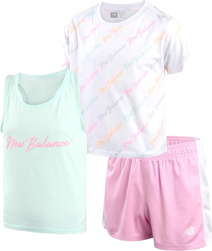 Girls' Active Shorts Set - 3 Piece Performance T-Shirt, Tank Top, and Gym Shorts - Summer Outfit for Girls (7-12)