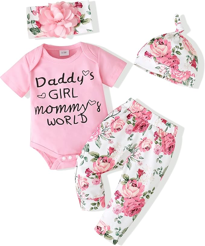 Newborn Infant Baby Girl Clothes Summer Outfits Infant Romper Pants Cute Toddler Girl Clothes Gift Set