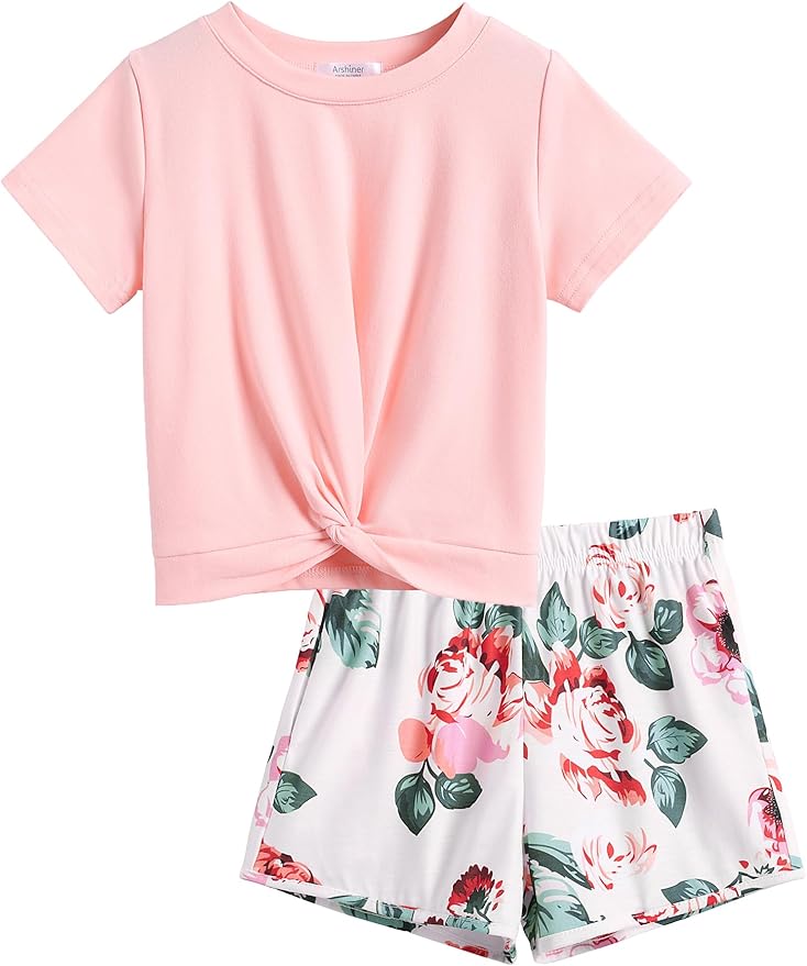 Girls Clothing Sets Twist Front Top and Shorts 2 Piece Outfits Activewear Tracksuit 3-14 Year