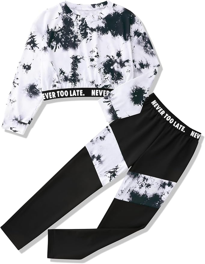 Girls Clothes Tie-Dye Long Sleeve Sweatshirt Cool Patchwork Sweatpants 2 Piece Girls' Clothing Sets Size 6-14 Years