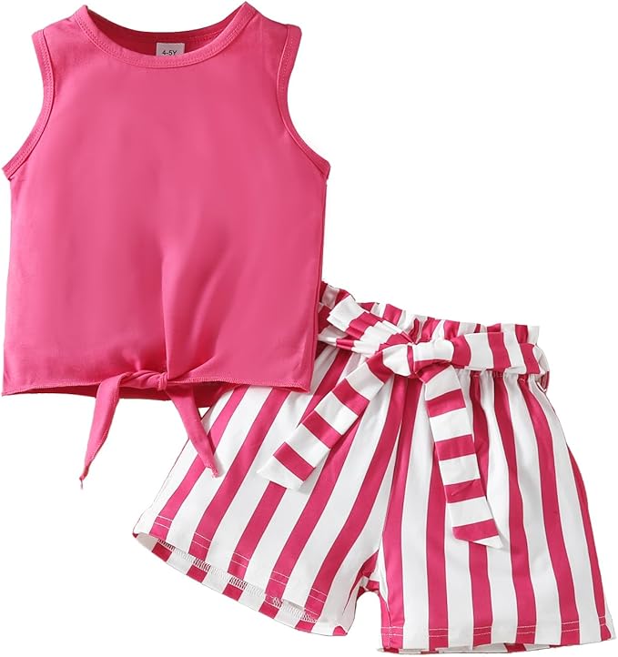 Toddler Kid Girls Clothes Hem Knotted Tank Top Striped Belted Shorts Summer 2 Piece Outfit