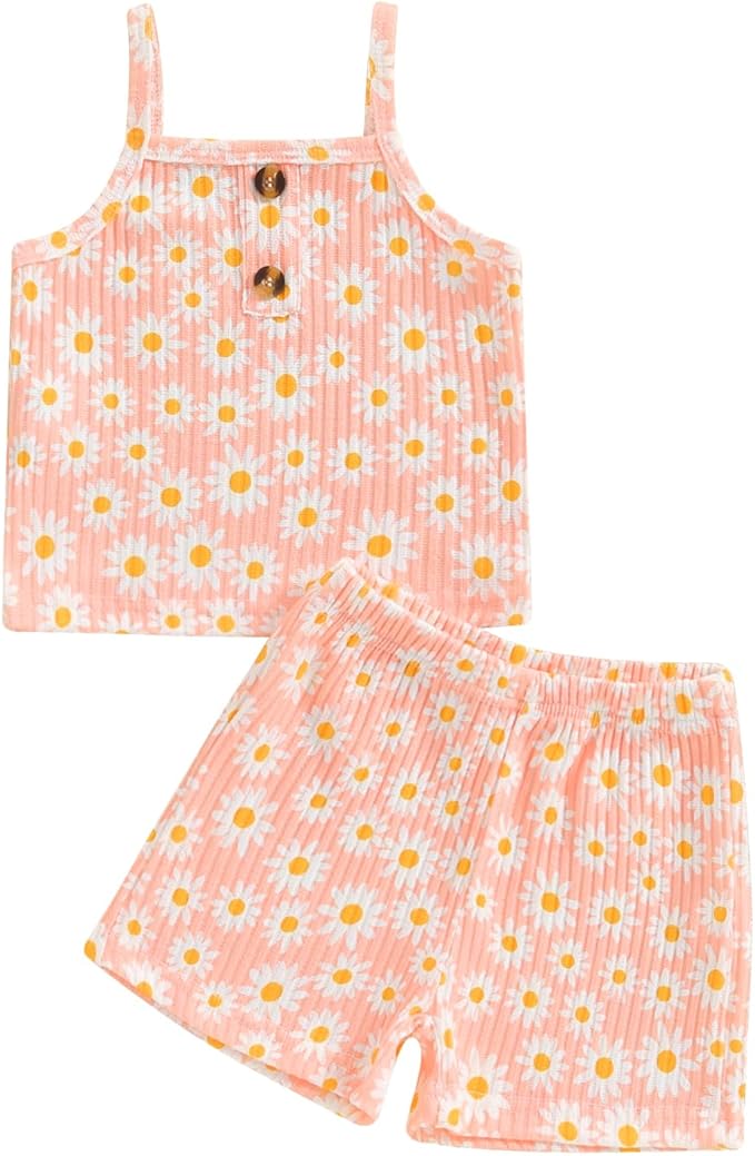 Toddler Baby Girl Summer Clothes Daisy Print Sleeveless Ribbed Camisole Tank Top and Shorts Set Boho Chic Clothing