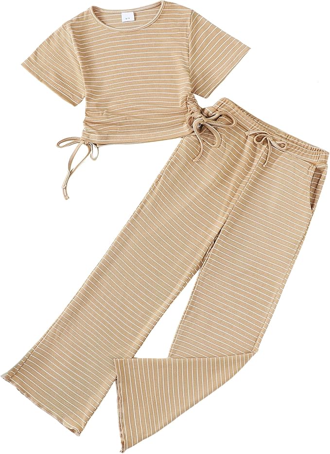Girls Clothes Sets Cute 2 Piece Outfit Short Sleeve Crop Top Striped Sweatsuit Spring Summer Tween Girls Tracksuits